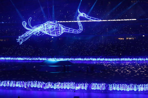 | Chiếc đèn led các cổ động viên được phát khi vào sân xem Lễ khai mạc - Ảnh: channelnewsasia |