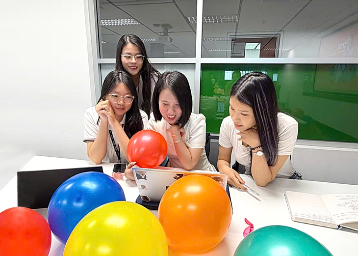 Ngọc Châu (thứ hai từ phải qua) luôn tràn ngập năng lượng tích cực, vui vẻ - Ảnh: T.TRUNG