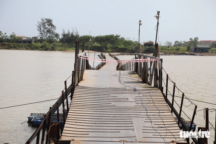 Cầu phao Triệu Độ bị tạm dừng hoạt động từ sáng 16-3 - Ảnh: HOÀNG TÁO