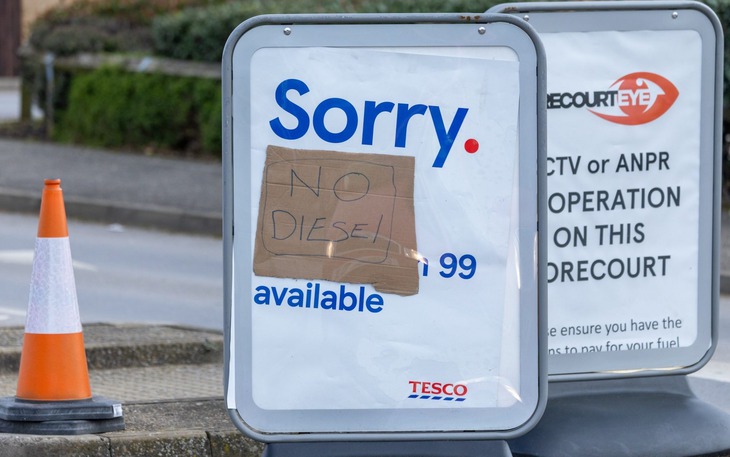 Một số trạm xăng tại Anh đã treo biển thông báo hết xăng - Ảnh: TELEGRAPH