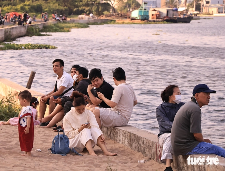 Ghi nhận của Tuổi Trẻ Online những ngày gần đây, tại cuối đường số 20 phường An Nhơn, TP.HCM, nhiều người dân tập trung đông đúc dọc bờ sông Vàm Thuật.
