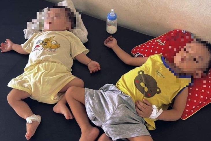 Hai bé trai đang được điều trị tại Bệnh viện Đa khoa tỉnh Bình Phước - Ảnh: A.B