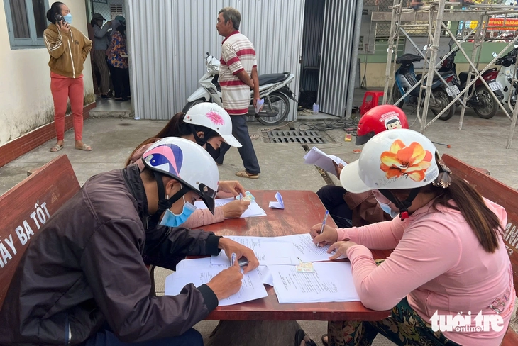 Nhiều người dân Vĩnh Long mang theo căn cước công dân và mẫu giấy xác nhận để làm thủ tục xin xác nhận nguồn gốc xuất xứ sản phẩm - Ảnh: H.T.