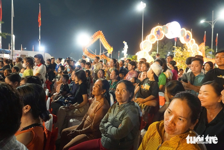 Người dân làng hoa Sa Đéc theo dõi show diễn - Ảnh: ĐẶNG TUYẾT