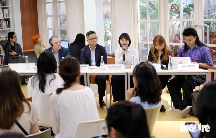 Họp báo ra mắt dự án làm phim tài liệu Lên tiếng cho mai sau (Voices for Tomorrow) diễn ra sáng 9-4 tại Hà Nội - Ảnh: ĐẬU DUNG