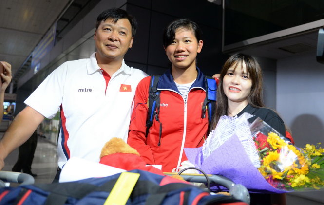 | Ánh Viên rạng ngời trong ngày trở về. Ảnh: Hữu Khoa |