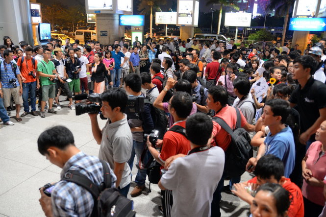 | Giới truyền thông đổ xô đến sân bay Tân Sơn Nhất. Ảnh: Hữu Khoa |