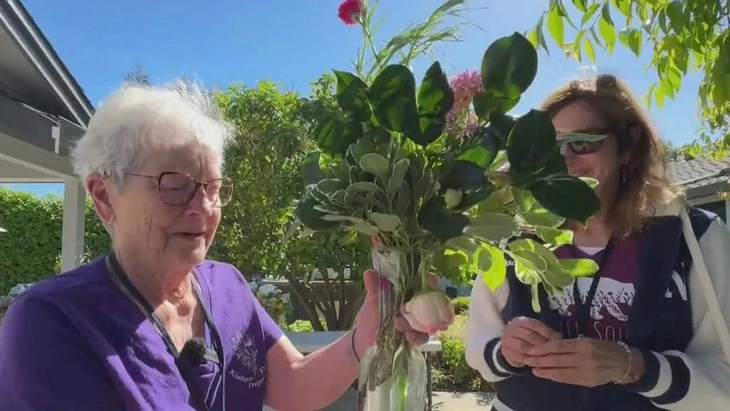 Bà Molly Fisher tổ chức tặng hoa cho người khó khăn - Ảnh: KPIX