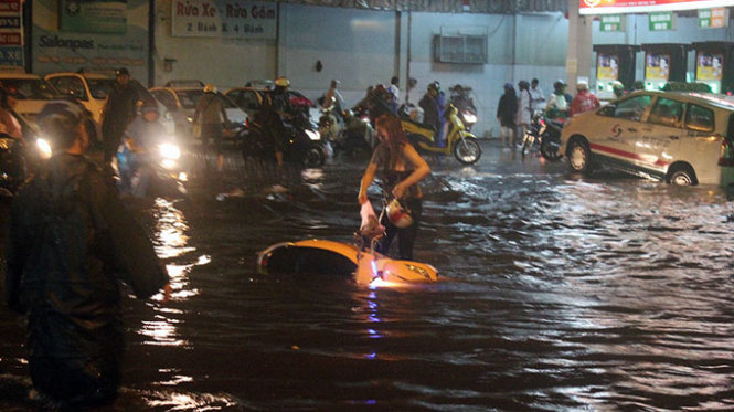 Tại đường Nguyễn Xí, Q.Bình Thạnh ngập khoảng nửa mét, xe cộ chết máy hàng loạt. Nhiều người dân chạy qua đoạn đường này ngã nhào xuống nước. Giữa tâm điểm của vùng ngập, tiếng la hét thất thanh kèm theo tiếng pô xe máy khiến cả tuyến đường náo loạn. Một vài người dân chở con nhỏ không dám để con ngồi trên xe mà bồng bế lội nước quá đầu gối.