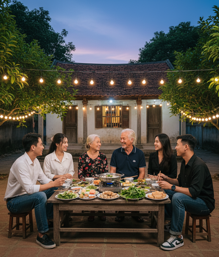 Những bữa ăn sum họp đông đủ thành viên gia đình là điều nhiều người mong mỏi giữa nhịp sống bận rộn này - Ảnh minh họa bởi AI