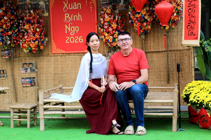 Tác giả và vợ chụp ảnh Tết Bính Ngọ 2026 - Ảnh: NVCC