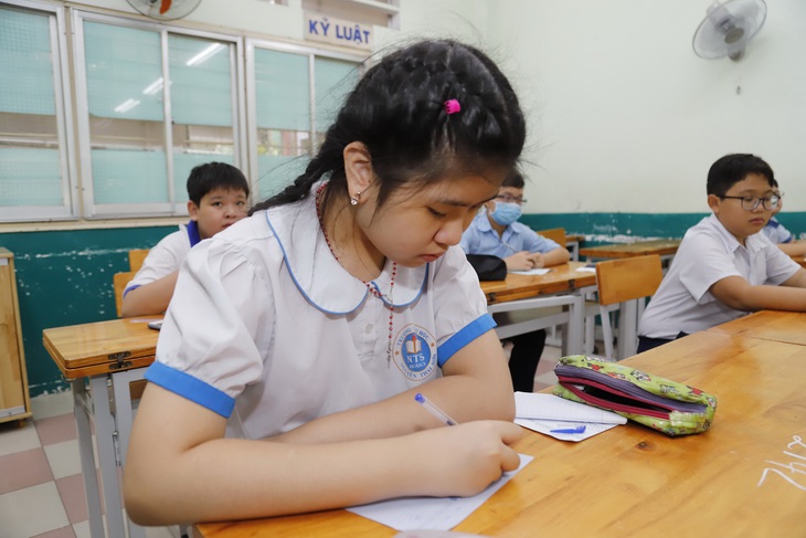 Học sinh tham gia kỳ thi khảo sát vào lớp 6 Trường Trần Đại Nghĩa, TP.HCM - Ảnh: NHƯ HÙNG