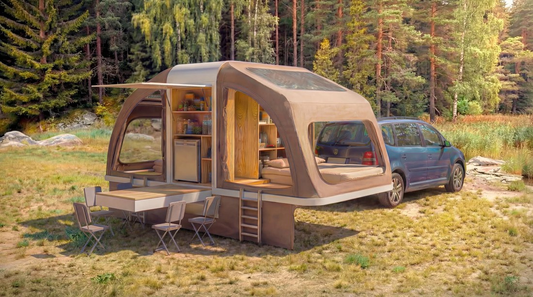 Nhà di động 'nở' gấp 3 lần: Bình thường nhỏ hơn cả Wuling Mini EV, khi mở rộng đủ cho 4 người sống - Ảnh 1.