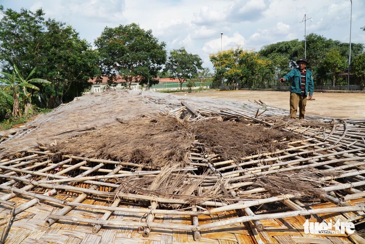 Chiều 8-5, một lãnh đạo xã Đắk R'moan xác nhận công trình nhà truyền thống bon Đắk R'moan trên địa bàn xã đã đổ sập hoàn toàn.