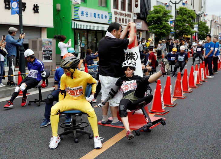 Các vận động viên tham gia đua ghế văn phòng - Ảnh: japantimes.co.jp