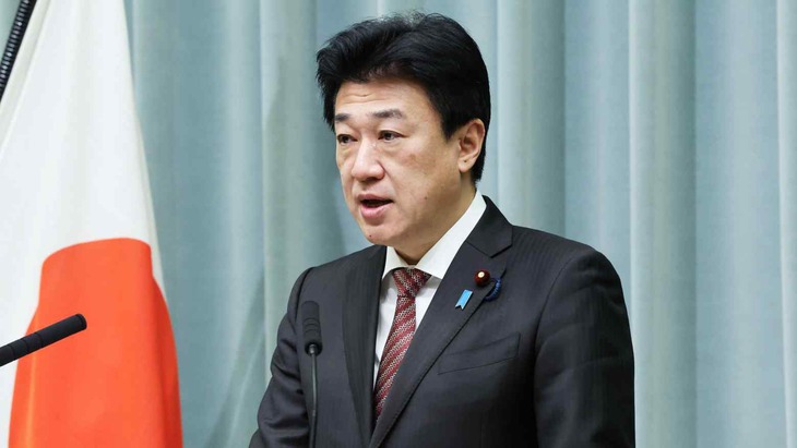 Chánh văn phòng Nội các Nhật Bản Minoru Kihara phát biểu trong cuộc họp báo tại Văn phòng Thủ tướng ở Tokyo ngày 19-12 - Ảnh: NIKKEI ASIA