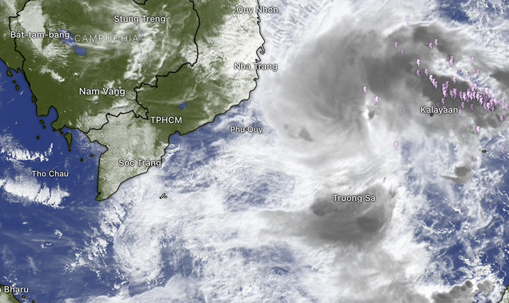 Quan sát ảnh mây vệ tinh vào 8h30 sáng nay cho thấy có khối mây dông lớn đang từ biển di chuyển vào Nam Trung Bộ, Đông Nam Bộ.
