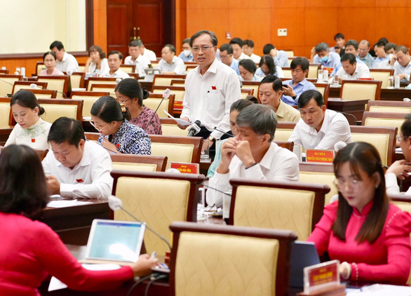 Đại biểu HĐND TP phát biểu tại kỳ họp lần 8 HĐND TP khoá X ngày 7-12 - Ảnh: HỮU HẠNH