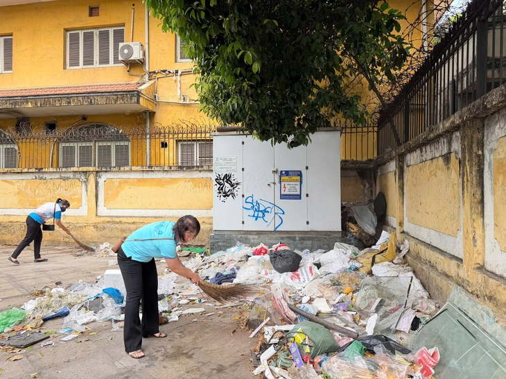 Dọn dẹp điểm tồn đọng rác thải tại góc đường Nam Kỳ Khởi Nghĩa - Võ Thị Sáu - Ảnh: PHƯƠNG LINH