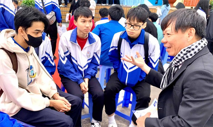 TS Nguyễn Trung Nhân - Trưởng Phòng đào tạo Trường ĐH Công nghiệp TP.HCM - tư vấn cho học sinh tại Chương trình tư vấn tuyển sinh - hướng nghiệp 2026 do báo Tuổi Trẻ tổ chức - Ảnh: TRẦN HUỲNH