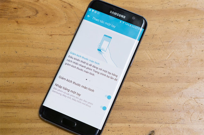 Truy cập vào Cài đặt – Tính năng nâng cao > Thao tác một tay. Tại đây, thiết bị sẽ đưa ra 2 tuỳ chọn, một là giảm kích thước màn hình để sử dụng toàn bộ phần màn hình trong khoảng không gian nhỏ hơn. Hai là nhập dữ liệu một tay khi thiết bị tự động thu nhỏ các loại bàn phím, công cụ nhập dữ liệu để phù hợp với khả năng sử dụng một tay nhất có thể.