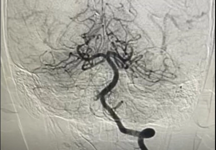 Ảnh chụp mạch máu xóa nền DSA của bệnh nhi 10 tuổi bị nhồi máu não cấp - Ảnh: Bệnh viện cung cấp