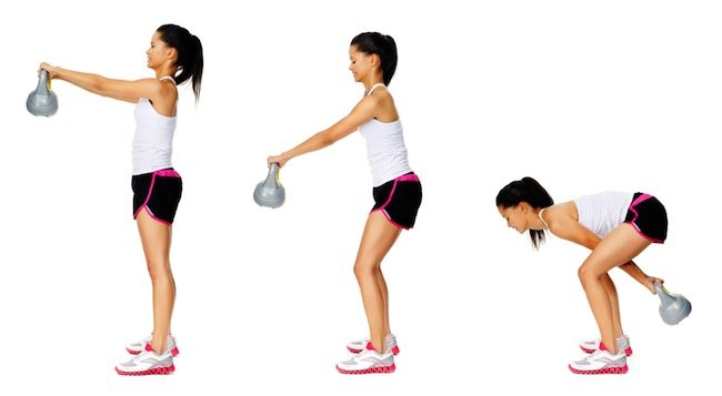Cầm một quả tạ, giơ lên trước mặt rồi khom lưng đánh lùi nó qua háng, thực hiện liên tục động tác này được xem là một bài tập cơ bản nhất của chứng chỉ tập luyện kettlebell (tập với tạ tay). Dù đơn giản nhưng nó giúp đốt cháy 20,2 calo/phút. Một người không mắc bệnh tim có thể thực hiện bài tập này trong khoảng 20 phút. Tức nó đốt đến hơn 400 calo cho 20 phút tập luyện. Trong khi chạy bộ 20 phút bạn thường chỉ đốt cháy được khoảng 200-300 calo (trung bình 10 calo/phút)