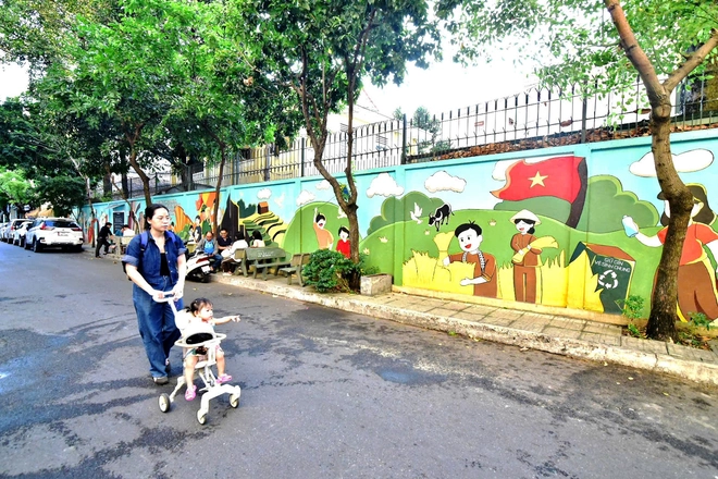 Tại hẻm 86 đường Phổ Quang, người qua đường đều thích thú với dãy tường vẽ bích họa do ông Nguyễn Khắc Mộc, Bí thư khu phố, vận động thực hiện - Ảnh: TRÍ ĐỨC
