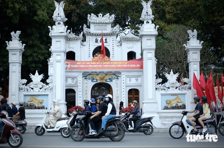 Đền Quán Thánh nằm bên ngã ba đường Thanh Niên - Quán Thánh, là một trong những địa chỉ hot dịp rằm tháng giêng - Ảnh: ĐẬU DUNG