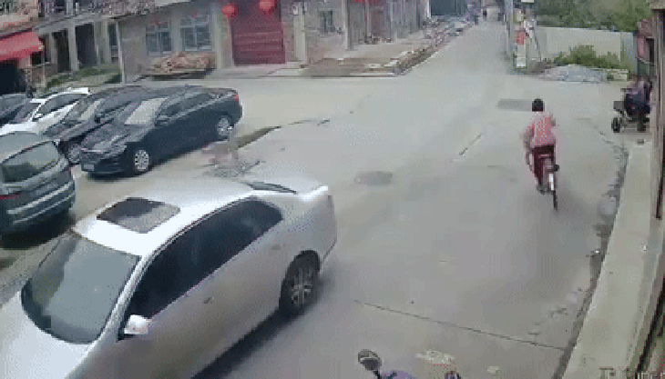 Hình ảnh từ camera giám sát đã ghi lại vụ việc cụ bà bị ngã khỏi xe đạp - Ảnh cắt từ video