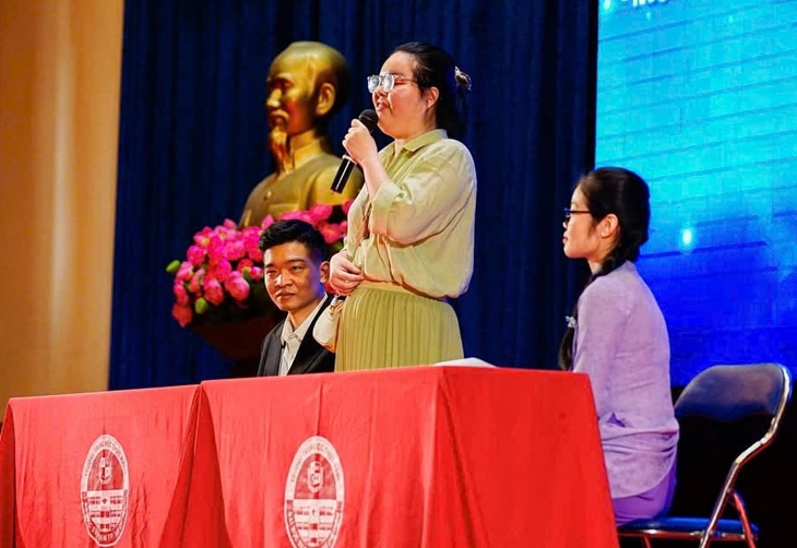 Hà Mi trong tọa đàm Ánh sáng từ trái tim và khát vọng nguồn ảnh trường trung học thực hành - Ảnh do nhân vật cung cấp