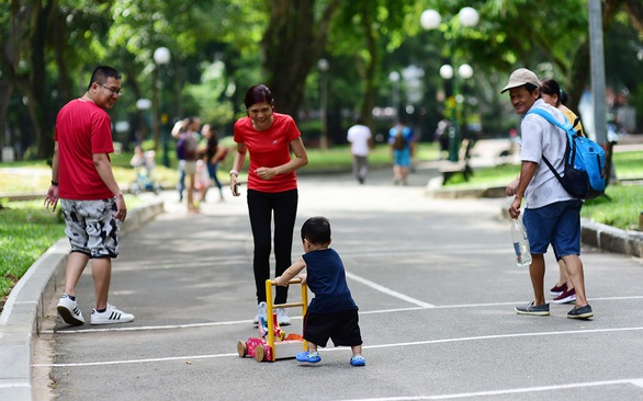 Một gia đình vui chơi ở công viên tại TP.HCM - Ảnh: QUANG ĐỊNH