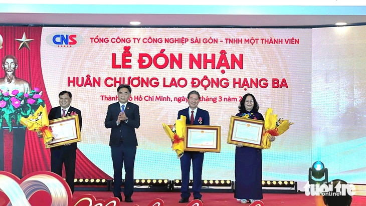 Hôm nay, Tổng công ty Công nghiệp Sài Gòn - TNHH MTV đón nhận Huân chương Lao động hạng ba do Chủ tịch nước trao tặng, ghi nhận những đóng góp trong phát triển sản xuất công nghiệp và kinh tế - xã hội của TP.HCM - Ảnh: C.T.