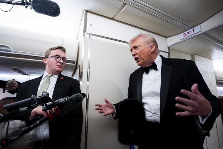 Tổng thống Trump trả lời báo giới trên chuyên cơ ngày 31-1 - Ảnh: AFP