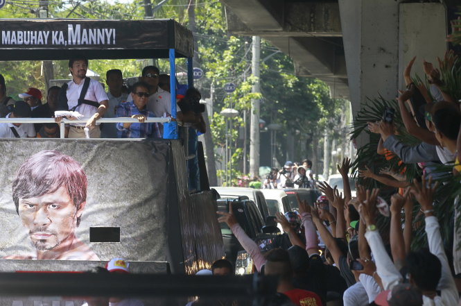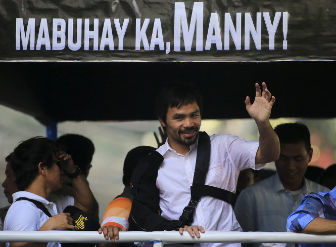 | Manny Pacquiao vẫy tay chào người hâm mộ Philippines. Ảnh: Reuters |