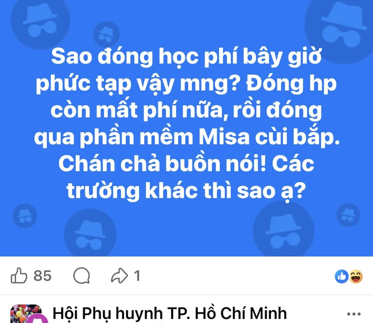 Nhiều phụ huynh ở TP.HCM chia sẻ về việc đóng học phí mất phí dịch vụ trên mạng xã hội - Ảnh chụp màn hình: THẢO THƯƠNG