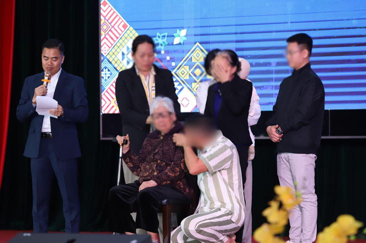 Người đàn ông bật khóc ôm lấy người mẹ già. "20 năm nay tôi chưa được ôm mẹ…", ông T. nói trong nước mắt.