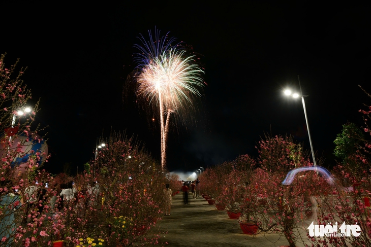Bắn pháo hoa ở Lễ hội Xuân Cần Giờ, tại Vinhomes Green Paradise - Ảnh: QUANG ĐỊNH
