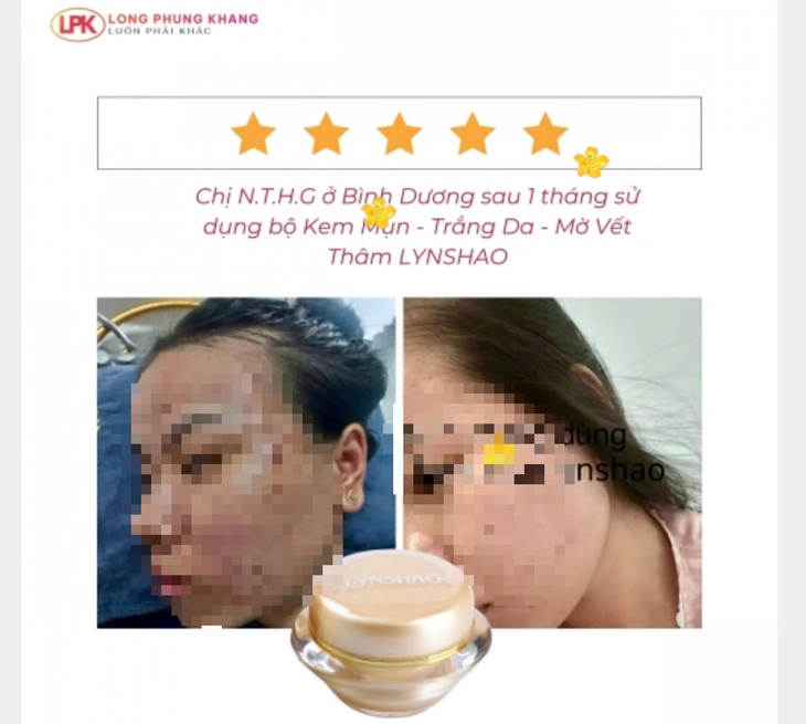 Quảng cáo sản phẩm kem trắng da, ngừa mụn, mờ vết thâm Lynshao phát hiện có chứa Dexamethason. Đây là chất không được phép có trong sản phẩm mỹ phẩm - Ảnh: Website của công ty