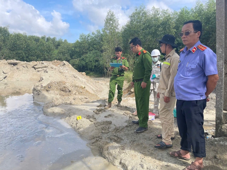 Cảnh sát phát hiện các điểm đổ chất thải và nước thải - Ảnh: TUẤN KIỆT
