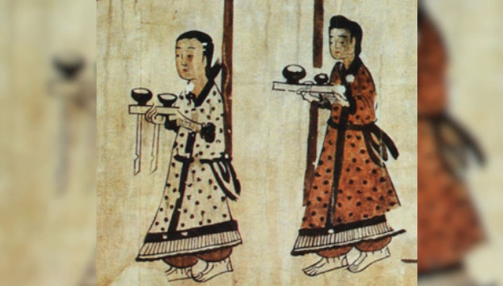 Bộ Hanbok của phụ nữ trong các bức bích họa Goguryeo thế kỷ thứ 5, bắt nguồn từ trang phục của các bộ lạc du mục phía bắc, bao gồm áo và quần riêng biệt, với váy chữ A mặc bên ngoài quần - Ảnh: Wikimedia Commons/Cổng thông tin Văn hóa Truyền thống Hàn Quốc