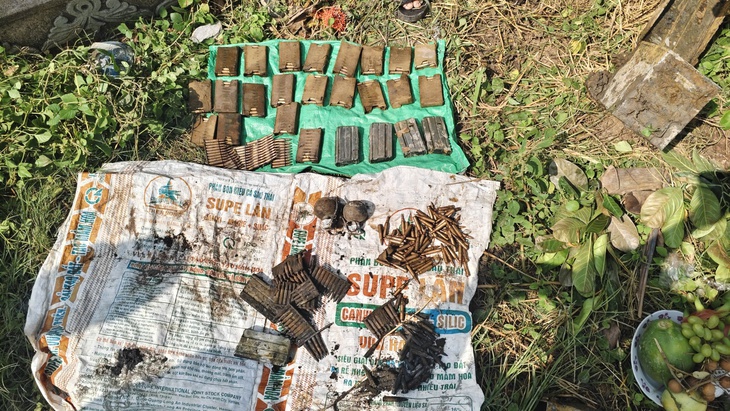 Số vũ khí, lựu đạn được phát hiện khi cải táng mộ - Ảnh: HOÀI THƯƠNG