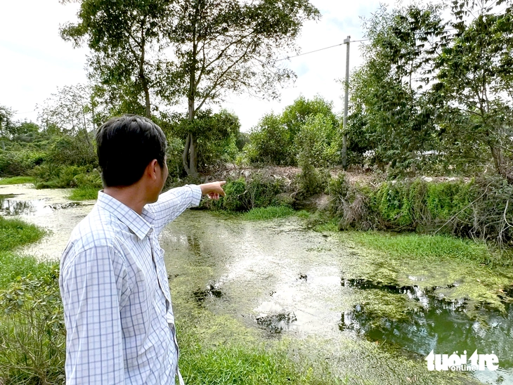 Không chỉ mùi hôi, nhiều người dân còn lo ngại nguy cơ ô nhiễm nguồn nước khi phát hiện dấu hiệu xả thải ra con kênh gần khu vực trang trại. Con kênh này trước đây được người dân sử dụng cho sản xuất nông nghiệp và sinh hoạt, nhưng thời gian gần đây xuất hiện lớp váng xanh dày đặc.