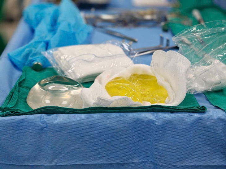 Sau khi thực hiện chẩn đoán hình ảnh, bệnh nhân được chỉ định phẫu thuật. Trong quá trình phẫu thuật, bác sĩ phát hiện túi ngực bên trái đã bị vỡ, chất bên trong tràn ra khoang ngực.