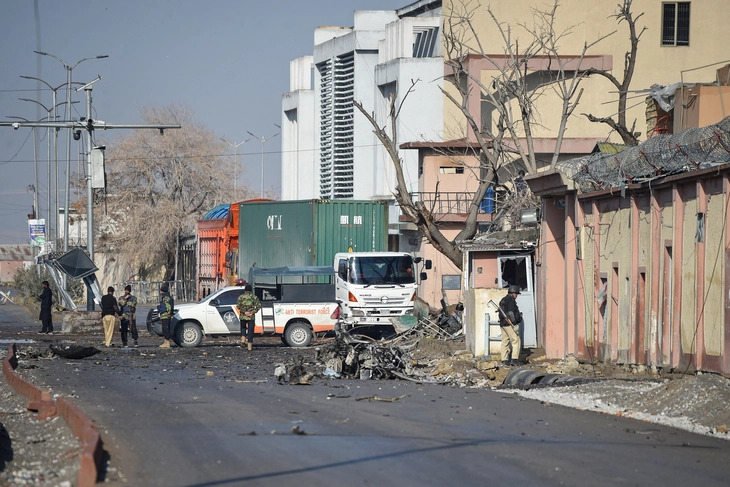 Một đoạn đường ở Quetta - thủ phủ tỉnh Balochistan - chịu thiệt hại do cuộc tấn công ngày 31-1 - Ảnh: AFP