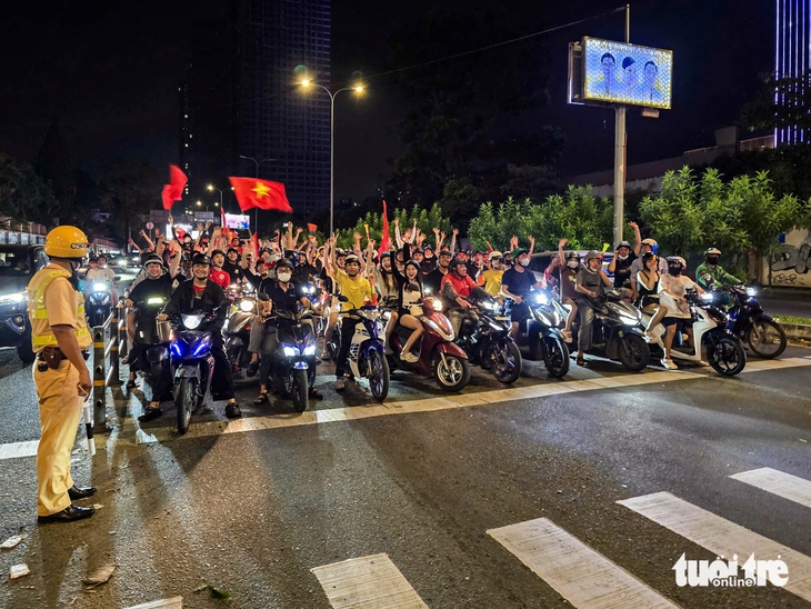 Trong cuộc trao đổi với Tuổi Trẻ Online, Phó cục trưởng Cục Cảnh sát giao thông - đại tá Phạm Quang Huy nhiều lần nhắc tới hình ảnh dòng người xuống phố ăn mừng chiến thắng sau các trận bóng đá của tuyển Việt Nam trong năm qua.