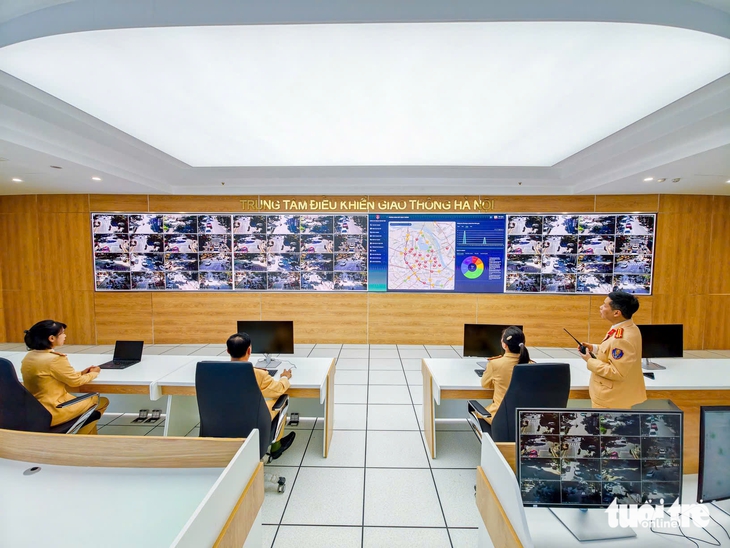 Lực lượng cảnh sát giao thông thúc đẩy việc chuyển đổi số thông qua hệ thống camera AI và ứng dụng VNeTraffic - Ảnh: HỒNG QUANG