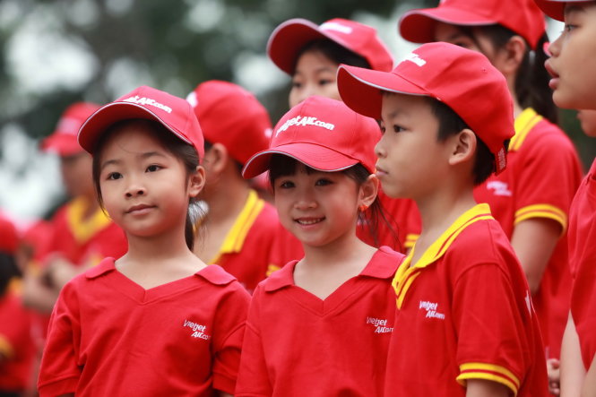 Các em thiếu nhi trong ngày chạy Olympic. Ảnh: Nam Khánh |