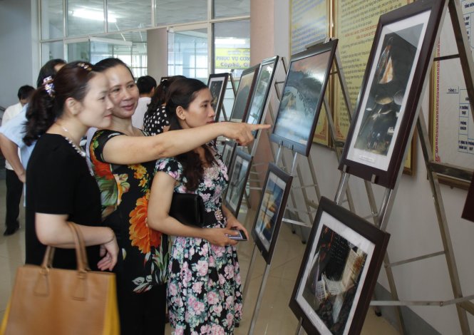 | Người dân chiêm ngưỡng các bức ảnh của nghệ sĩ Sỹ Minh |