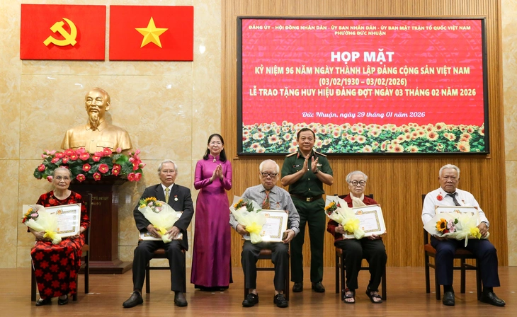 Chiều 29-1, Đảng ủy phường Đức Nhuận tổ chức họp mặt kỷ niệm 96 năm Ngày thành lập Ðảng Cộng sản Việt Nam (3-2-1930 - 3-2-2026) và lễ trao tặng Huy hiệu Đảng đợt 3-2-2026.